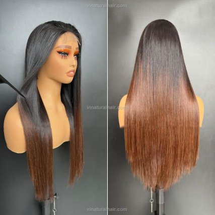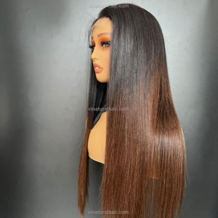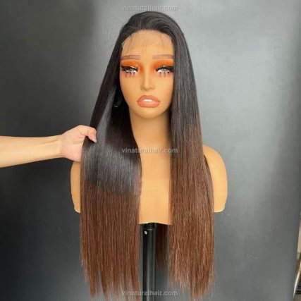 Wig Bone Straight Human Hair Brown Tip Color 2X4 Swiss Lace 300g DD 20” Long Lasting
