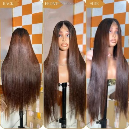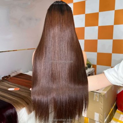The Wig Natural Brown Black Root is a luxurious choice for anyone seeking a flawless, natural look. This wig is made from 100% raw Vietnamese hair and is renowned for its strength and silkiness—this wig combines premium quality with expert craftsmanship. It comes in two weight options: 200g DD 24” vs 100g SDD 26”, and features a 2×6 Swiss Lace base with natural, small knots for a seamless finish. The designed wig cap guarantees comfort and a perfect fit. With 17 years of experience in manufacturing and exporting, we ensure top-tier hair grade, impeccable quality, stunning styles, and consistent color standards. This is more than just a wig- it’s your confidence, perfected.