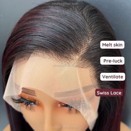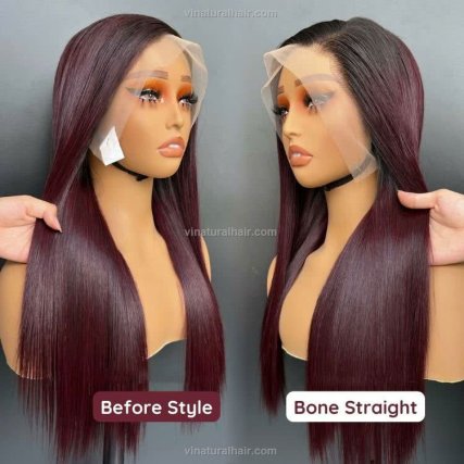 Burgundy Vietnamese Human Hair Wig in Frontal Lace Ready to Ship