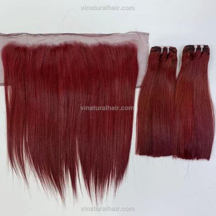 Red human hair bundles with frontal hair is a hot trend in the hairstyle fashion stage, and it is becoming more and more popular. Vietnamese red straight hair bundles and frontal - Top high quality 100% human hair.