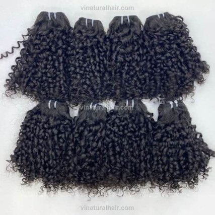 Vietnamese high quality Pixie Curl weft hair is a bundle of hair that needs difficult skill to create very small curls and combine it to create a bundle. Pixie Curl Weave hair is one of the most attractive hairstyles in the catalog which customers want to order more and more for business.